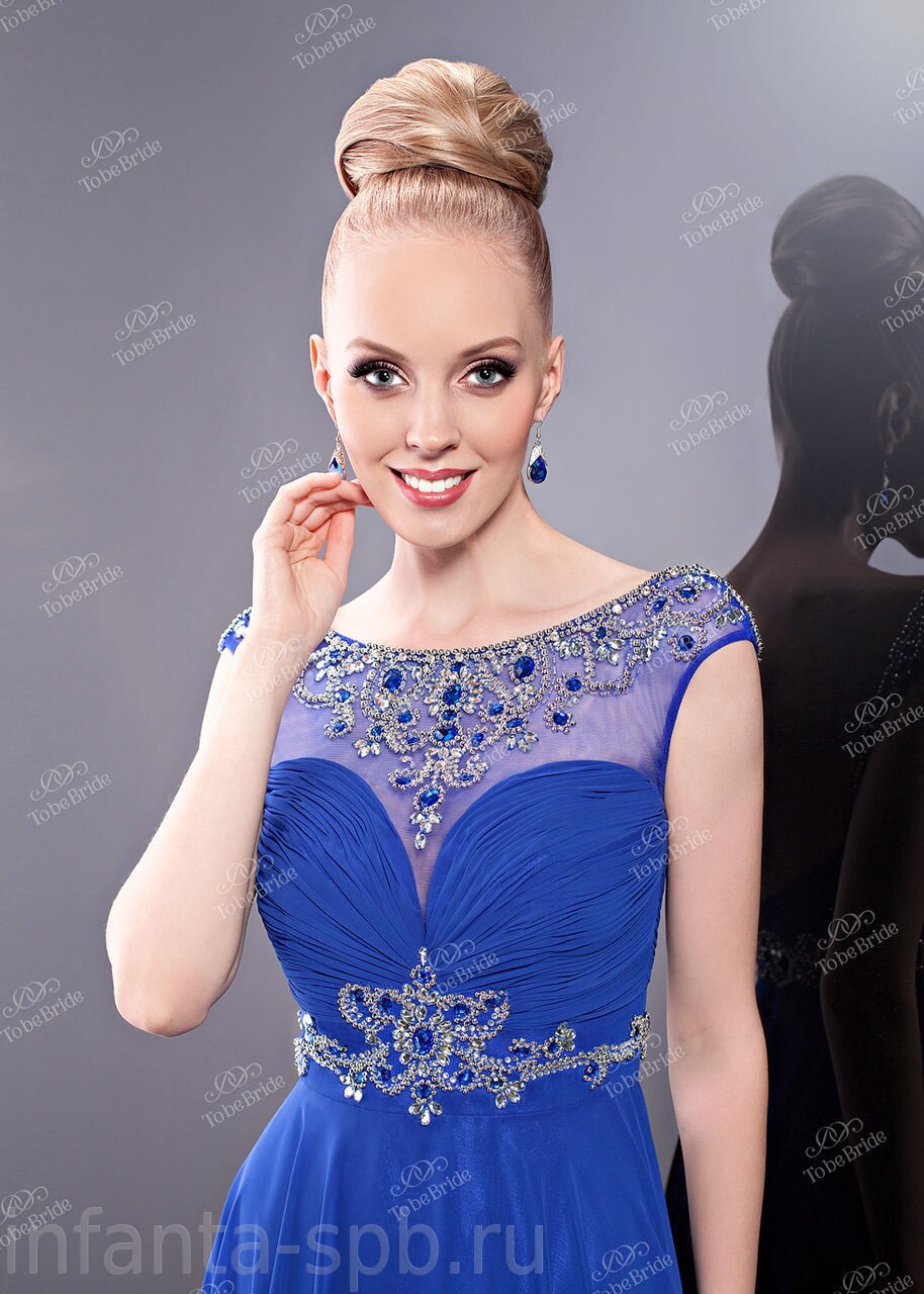 Насыщенный синий цвет этого шикарного длинного платья будет к лицу как убежденным блондинкам, так и жгучим брюнеткам, весь секрет в сочетании легкости, изящества и декоративных элементов на груди. Отличный выбор для того, чтобы произвести впечатление! Материал: шифон. Отделка: бисер, стеклярус.
